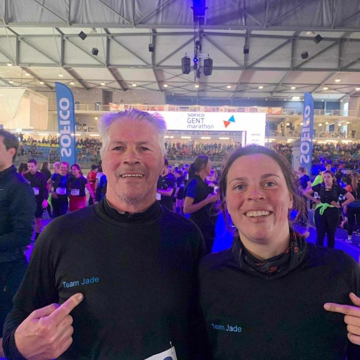 Tijdens de Ghent Marathon trachtte het PID Research Lab 'Aangeboren Immuunstoornissen' onder de aandacht te brengen, versterkt met Team Jade en de bezieler van KLOEN, Geert!